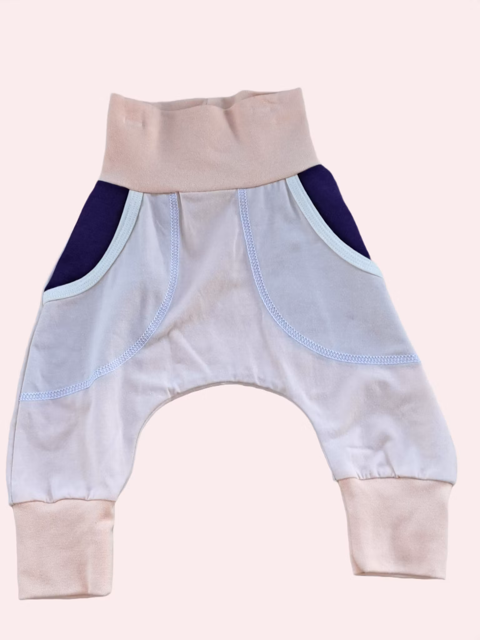 Muddbyxa med fickor sydd i ljusaprikos trikå.