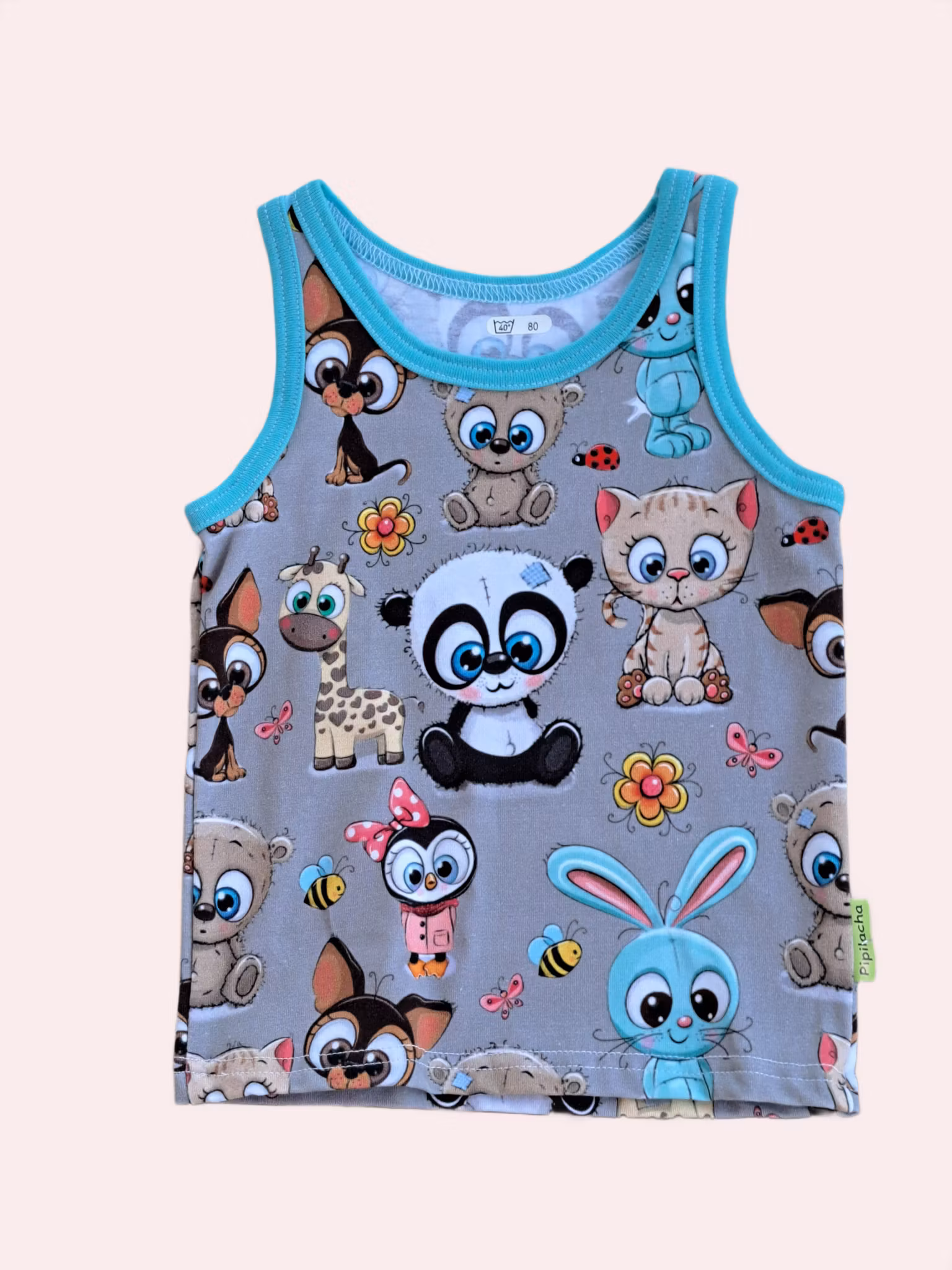 Mönster med roliga djur på grå bakgrund.
