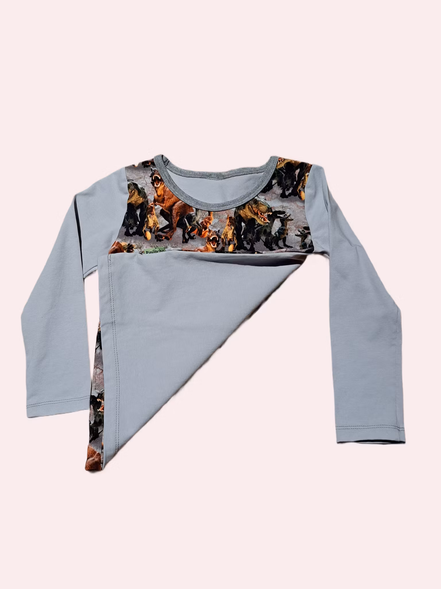 Mönster med dinosaurier på grå bakgrund. Med grå ärmar och baksida.